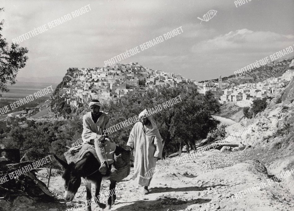 pendant le Moussem (pèlerinage), septembre 1942. Les moussems de Moulays Idriss évoquent la figure légendaire et réelle du fondateur des dynasties marocaines et du Maroc Musulman.